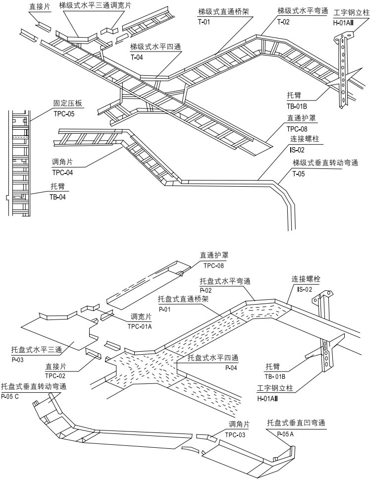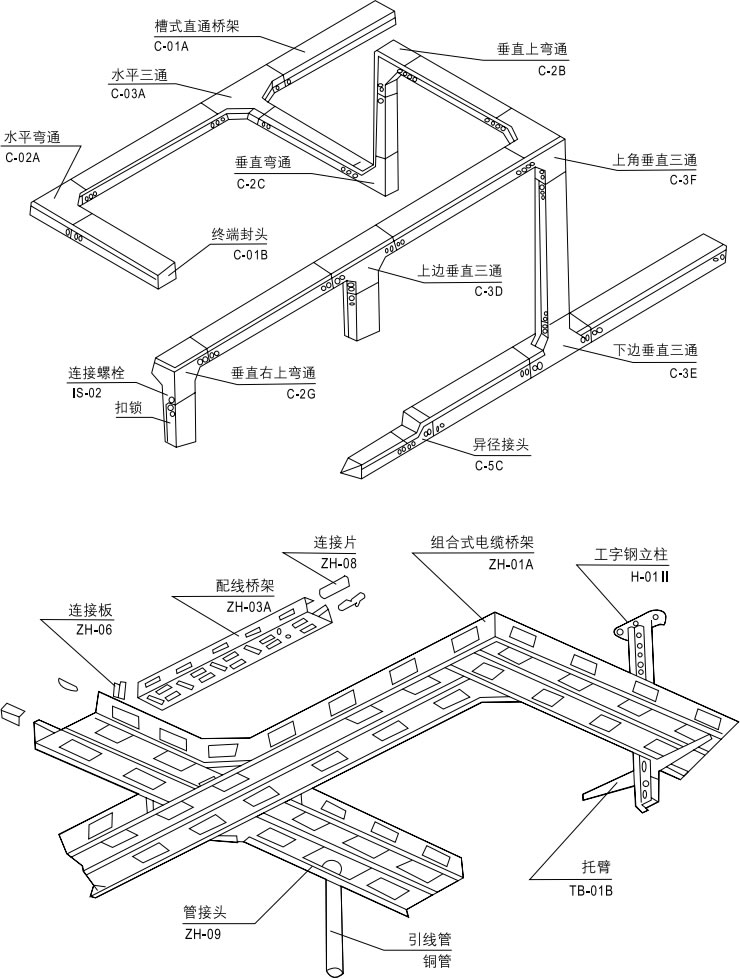 梯級(jí)式、托盤式、A型組合式電纜橋架 XQJ-T、P、ZH-01A |