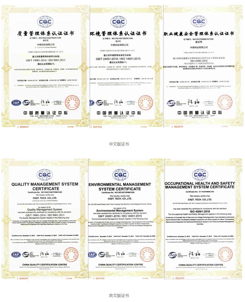 于2019年12月3日,我司迎來了**質(zhì)量認(rèn)證中心**階段審核,接連于12月7日進行第二階段審核,經(jīng)過緊張嚴(yán)密的審查,對我司良好的經(jīng)營情況與現(xiàn)場生產(chǎn)狀況予以確認(rèn),滿足生產(chǎn)條件,給予合格評定。于2019年12月17日下發(fā)體系證書。
